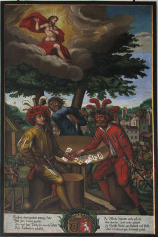 diese Tafeln den Frevel ins Jahr 1392. Die Kartenspieler spielen hier mit