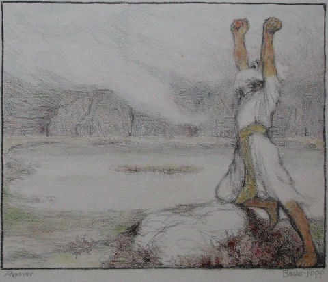 Kreide auf Papier, 27x32.7 cm Träger 46x58 cm, unten rechts signiert "Basler-Kopp", unten links betitelt "Ahasver" In Privatbesitz in Münchenbuchsee