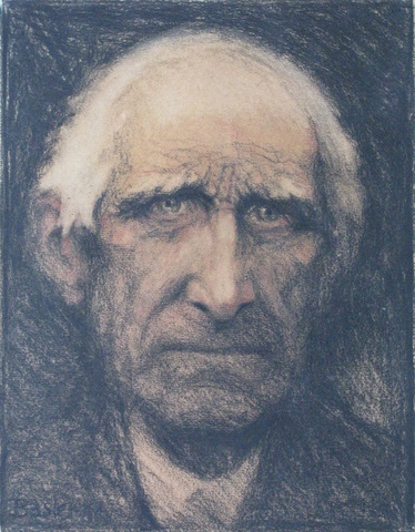 Kohle auf Papier, 33.5x26 cm, verso mit Bleistift "Bauer" (weder von Basler noch von seiner Frau) In Privatbesitz in Münchenbuchsee