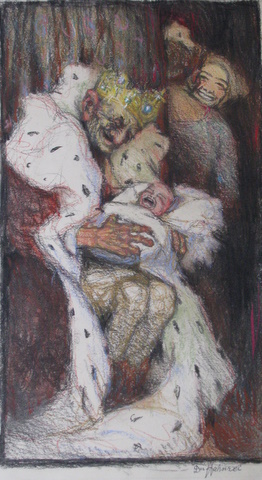Kreide auf Papier, 45x25 cm, Trägerpapier 65x46.5 cm, unten rechts betitelt "Der Hahnrei" In Privatbesitz in Münchenbuchsee