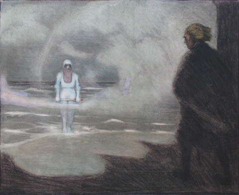 Kreide auf Papier (oben an Karton geklebt), 46x56.5 cm, verso mit Bleistift "Basler-Kopp" und "Obacht" In Privatbesitz in Münchenbuchsee
