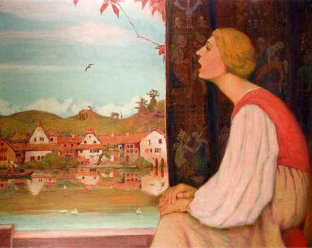 Nach den Aufzeichnungen von Julia Basler-Kopp ist "Das Volkslied" das letzte, fertig gemalte Bild von Basler. An der Gedächtnisausstellung von 1938 war es als "unverkäuflich" gekennzeichnet, Julia Basler wollte es also offensichtlich behalten. Das lange verschollene Bild tauchte an der Auktion des Hauses Dr. Jürgen Fischer, Heilbronn, am 26.11.2005 wieder auf zusammen mit dem Bild "Frühlingsmythos". Die Witwe Basler hat das Bild entweder schon zu Lebzeiten oder testamentarisch der Schwester ihres Gatten Franz Karl Basler-Kopp vermacht, die unter dem Namen Sitterle in Freiburg i.Br. lebte. Diese hat das Bild an ihre Tochter Vera Sitterle weitergegeben, welche es ihrerseits bei ihrem Ableben 1996 einer langjährigen Freundin in Bad Friedrichshall weitergab. Aus Platzgründen verkaufte es diese über das obenerwähnte Auktionshaus, auf welche Weise es in den Besitz des Verfassers dieser Website überging.