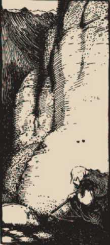 Den Leuten graute. Sie schauten ihm nach, da er im strömenden Regen, wie vom Sturmwind vorwärts geschoben, talauf hastete. Drüben vor der hohen Bergwand aber wuchs er unversehens zu einem riesenhaften Schatten an und stieg oder flog vielmehr in gehetzter Eile den schwindelnd steilen Pfad empor, bis er oben am Grat jäh wie ein Gespenst verschwand.